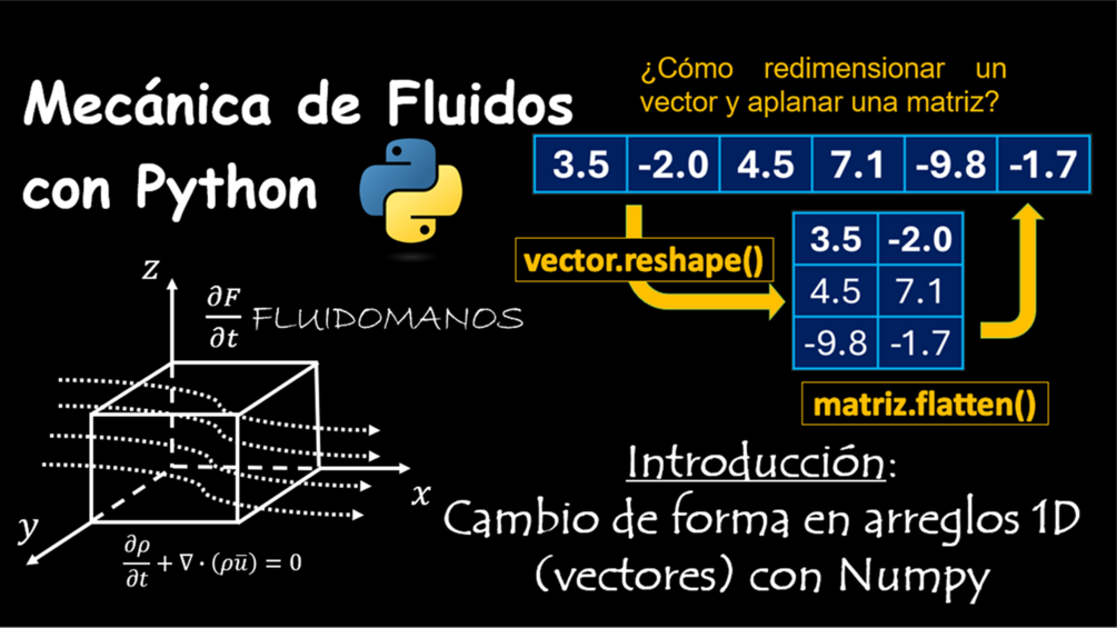 En este video te archivo te explico como redimensionar un vector o arreglo 1D para transformarlo en una matriz. También te muestro como se puede “aplanar” una matriz 2D para reducir su dimensionalidad a 1D. Además, te menciono como esto es útil en la mecánica de fluidos.