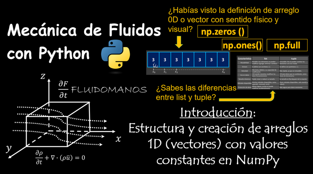 En este video te explico de forma visual que es un arreglo unidimensional (1D) o vector, teniendo en cuenta la dimensión (x,y,z). Ademá, aprenderás las diferencias que hay entre las variables definidas como listas, tuplas y numpy.ndarray.